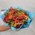Композиция гербер, хризантем и роз в тыкве
