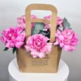 Букет розовых гербер, пионов и роз