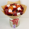Букет из кустовых роз и подсолнухов