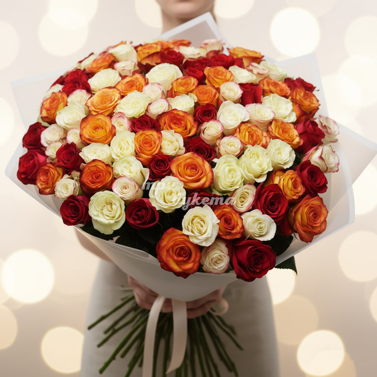 - Разноцветные розы (Эквадор), 101 шт.
