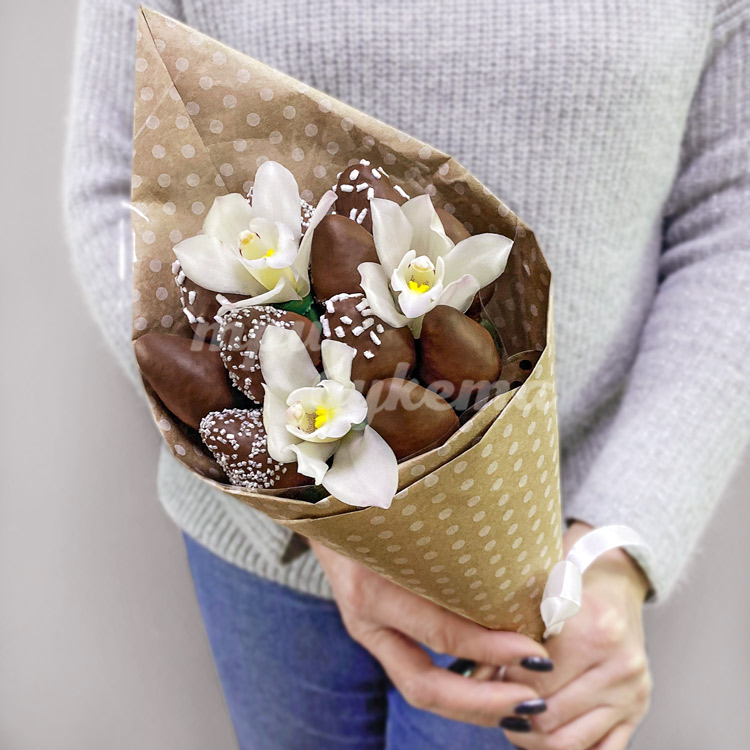 11 клубник в шоколаде с орхидеями
