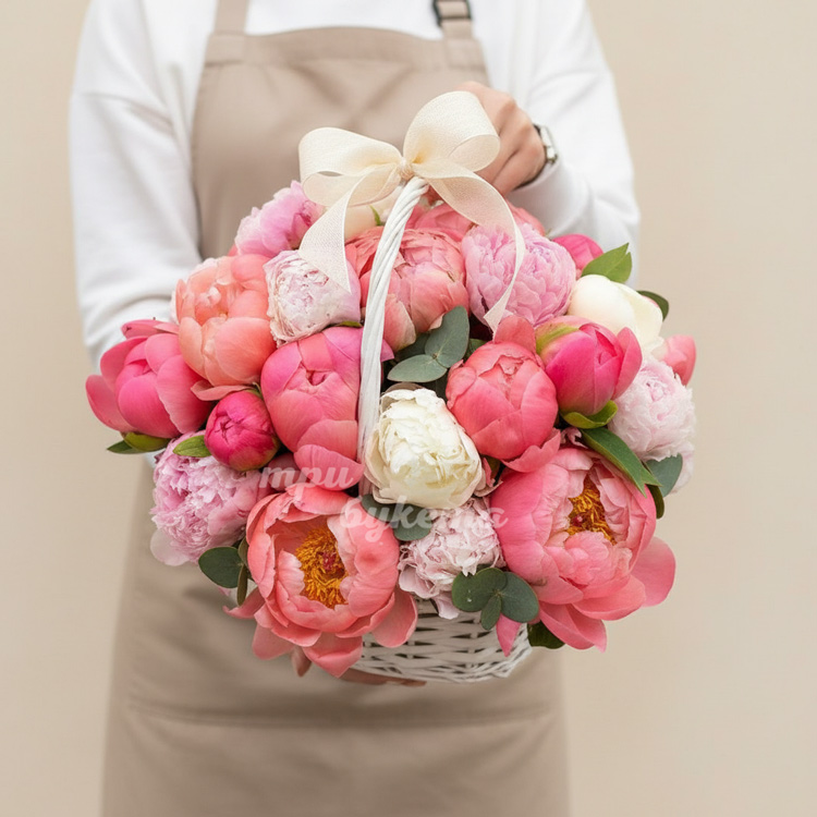 25 пионов в корзине