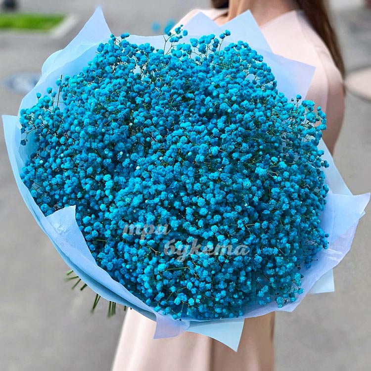 Большой букет из голубой гипсофилы