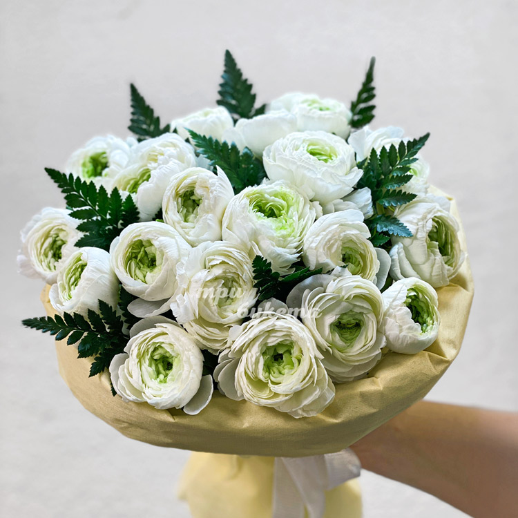 Букет белых ранункулюсов с папоротником
