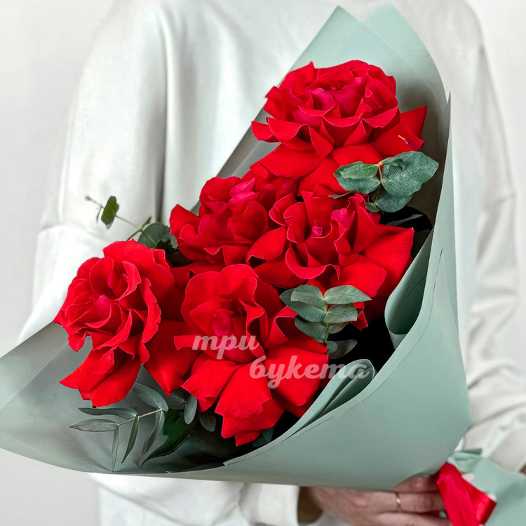 Букет из 5 красных французских роз Нина