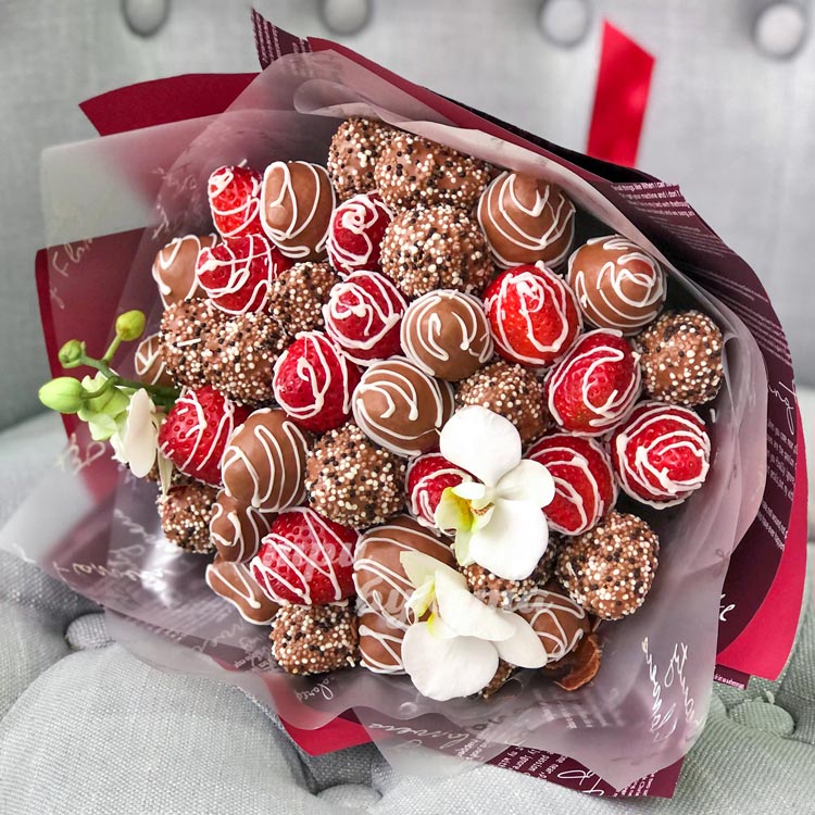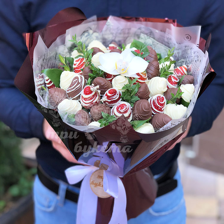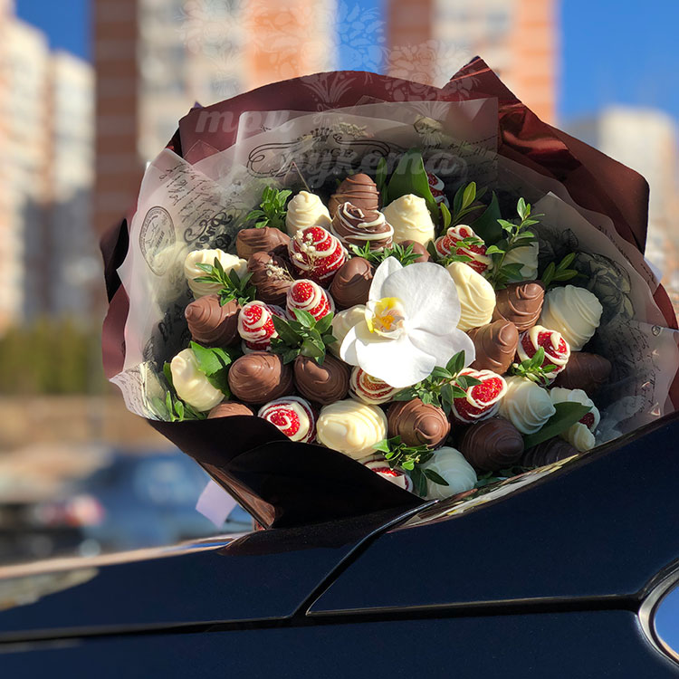 Букет из клубники и орхидеи