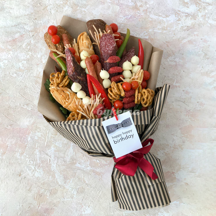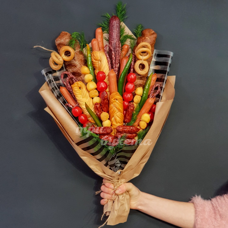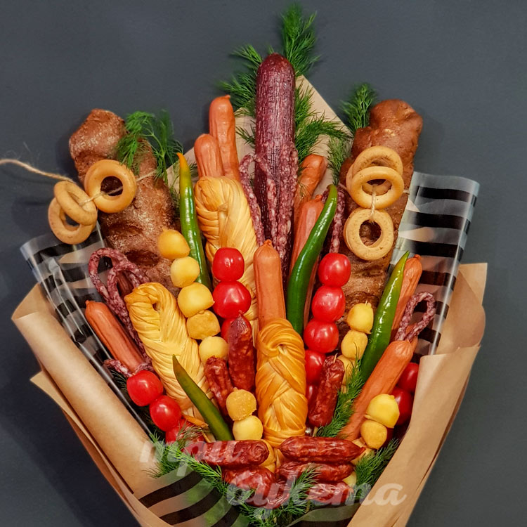 Букет из колбасы и овощей в крафте