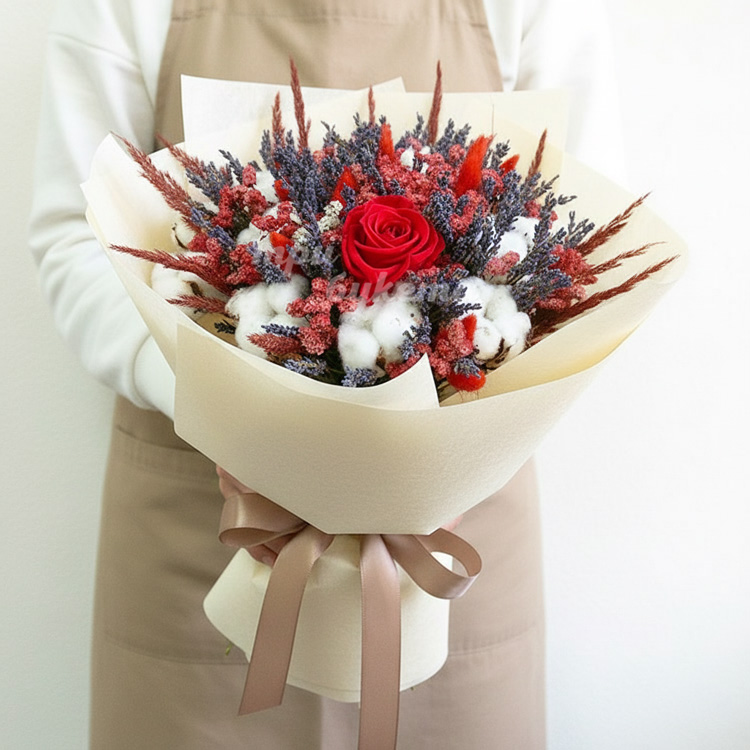 Букет из лаванды и розы