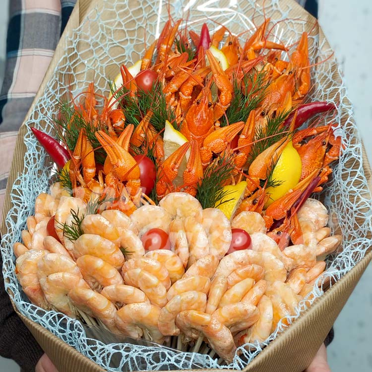 Букет из раков, креветок и перца