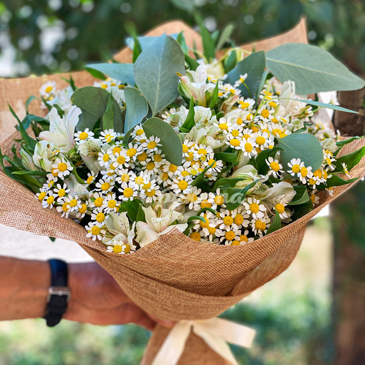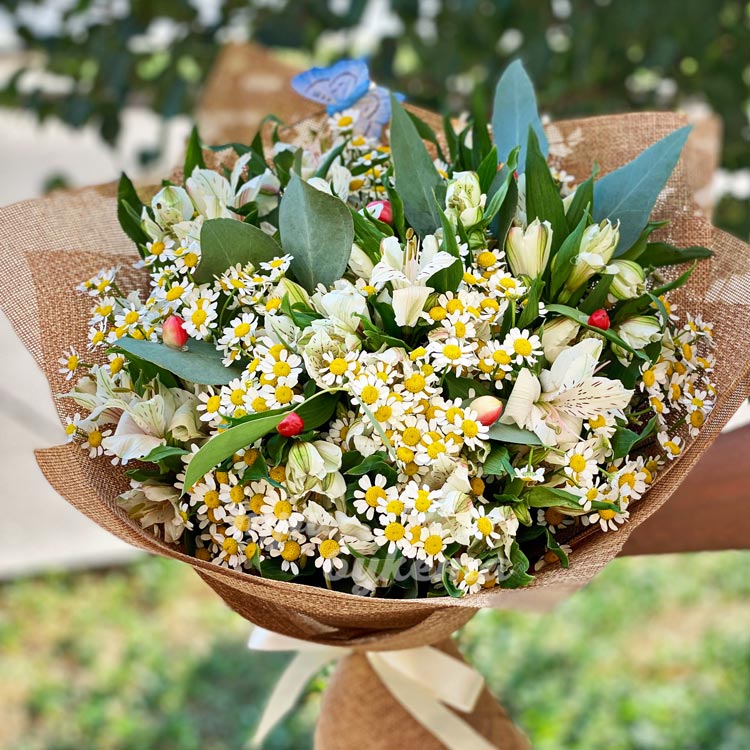 Букет из ромашек и альстромерий