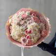 Букет нежных гвоздик и роз с брунией