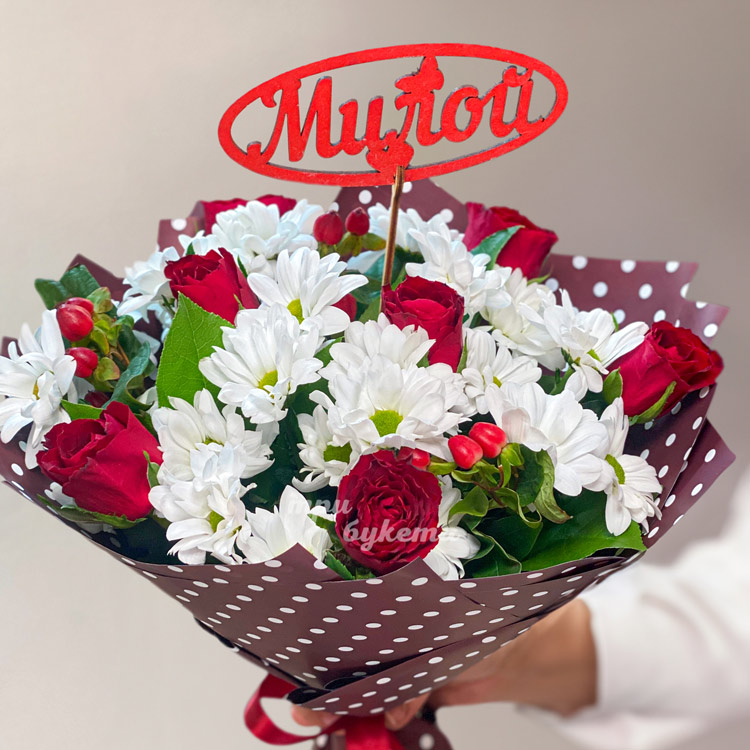 Букет роз и хризантем на 8 марта