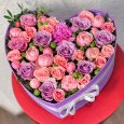 Гвоздики, розы и гортензии в коробке
