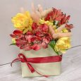 Коробка альстромерий с хризантемами