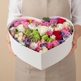 Коробка эустом, хризантем и гербер