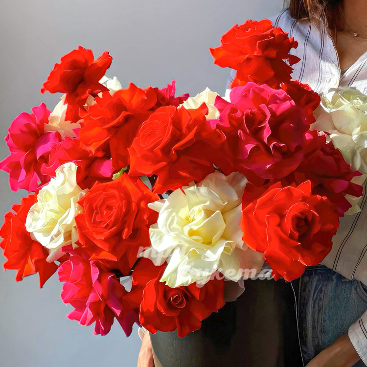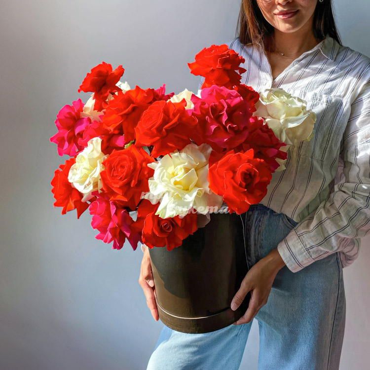 Коробка разноцветных французских роз