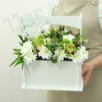 Коробка с 5 макарунами и хризантемами