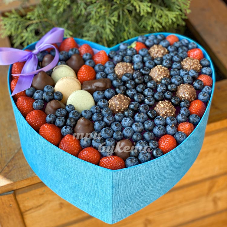 Коробка-сердце с ягодами и макарунами