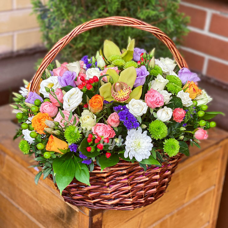 Корзина роз, орхидей и хризантем