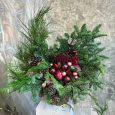 Красный букет из хризантем и нобилиса