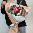 Розовый букет тюльпанов и альстромерий