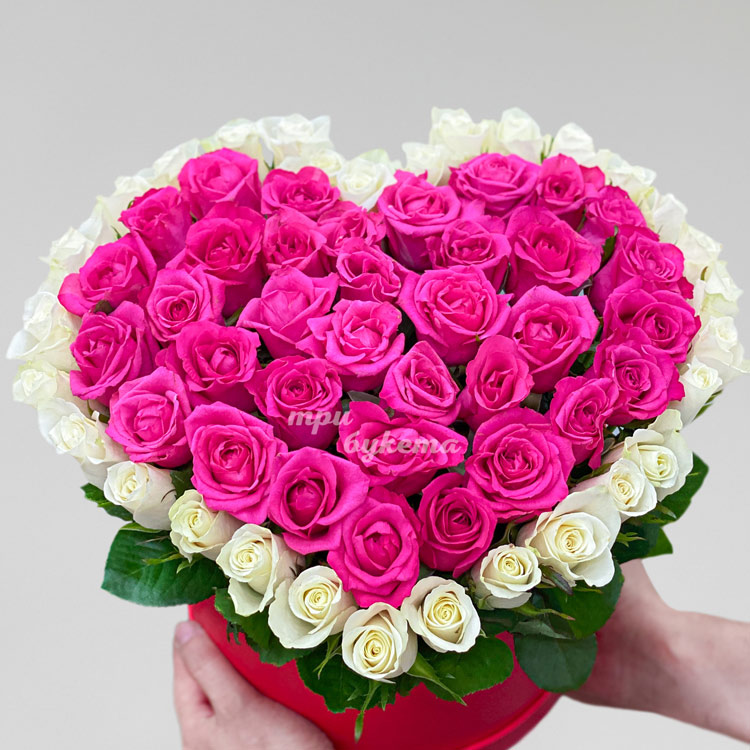 Сердце из роз на 8 марта в коробке
